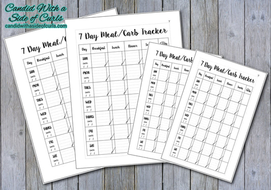 7 Day Meal and Carb Tracker Bullet Journal-Printable Pages