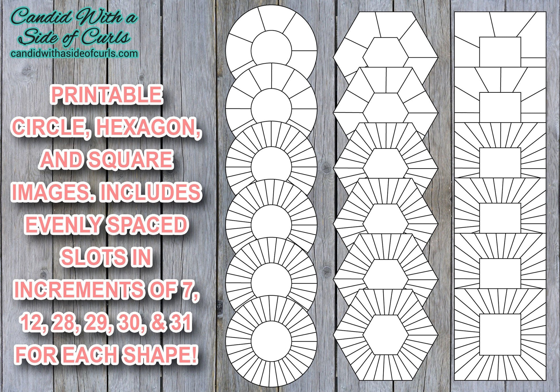 Circle, Hexagon, Square With 7, 12, 28, 29, 30, & 31 Spaces Bullet Journal Printable JPEG Images