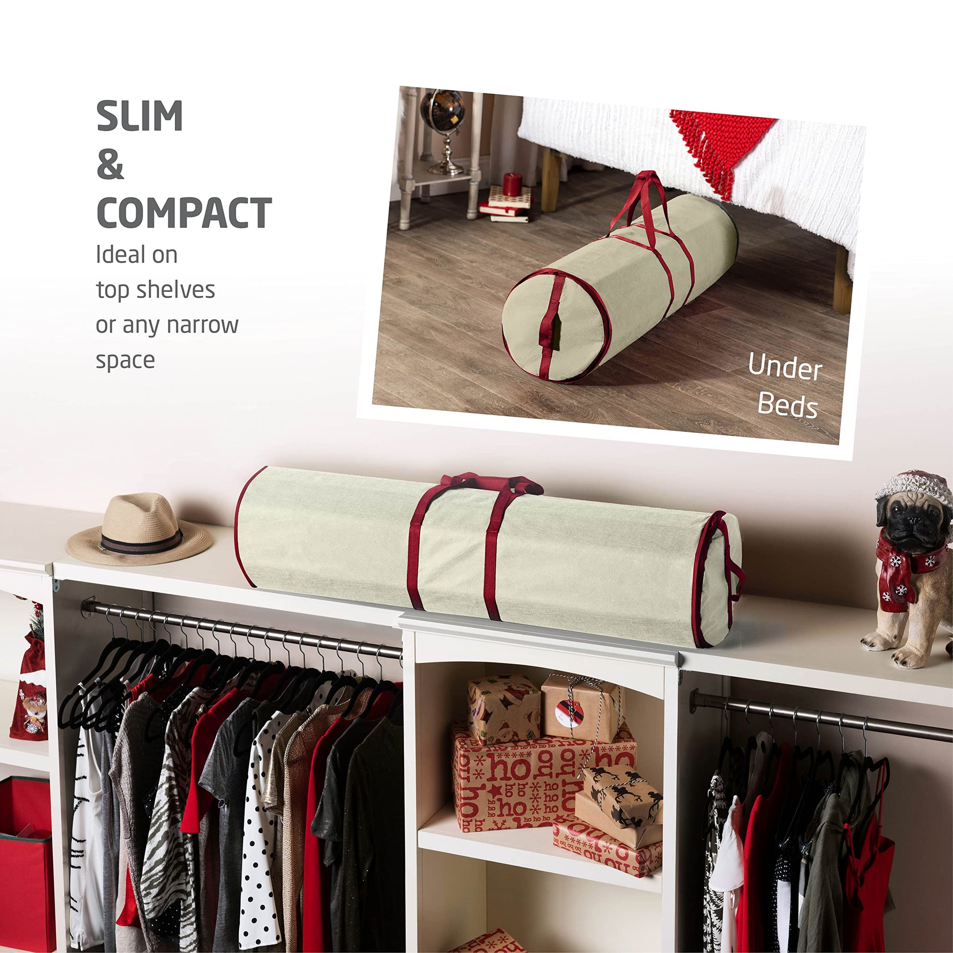 - CHRISTMAS CHEER - Adorned with cheery Christmas holiday colors, this organizer adds a festive touch to the atmosphere and turns packing up the Christmas holiday into a joyful experience. Designed with lively hues, it brings a sophisticated yet exciting look to your holiday storage, just like a beautifully decorated Christmas tree.